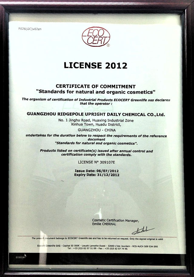 ○ 歐盟ECOCERT天然有機(jī)化妝品生產(chǎn)認(rèn)證證書