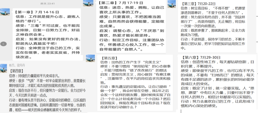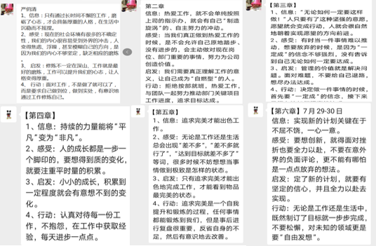 本次共讀,書友們?nèi)?00%參與打卡,以“閱、知、行”為核心導向,采用“信息+感受+啟發(fā)+行動”的方式總結(jié)自己的收獲和感悟,切切實實讓書友們做到學有所獲,學以致用。