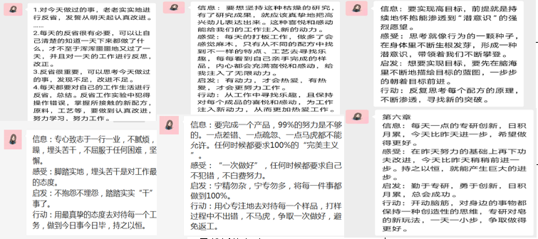 “書友分享共讀收獲&工作組感言”、“頒發(fā)‘優(yōu)秀共讀者’”、“思維導圖分享”三個互動板塊組成了精彩生動的結(jié)營儀式。本期意味深長的讀書會,留給書友們的是人生及工作上用之不竭的思考和收獲,“匠心”、“精進”的種子已然種下,定會在工作上、生活上有所進步。